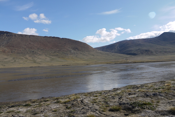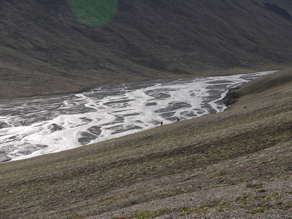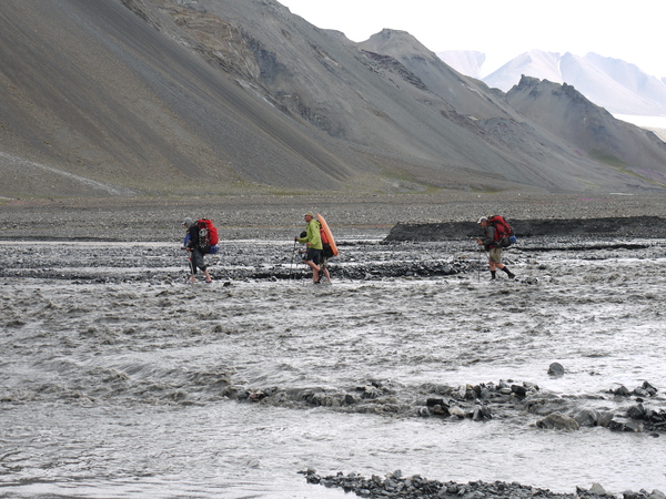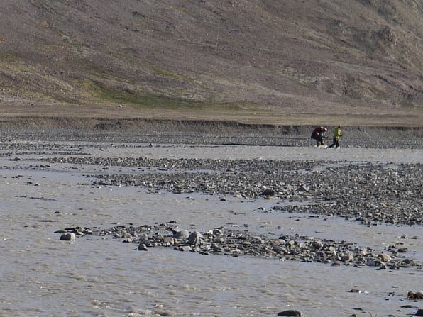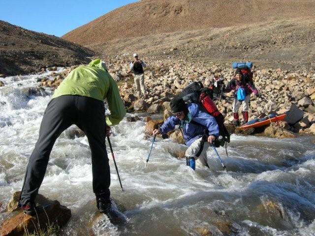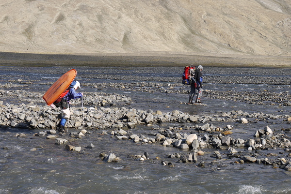 One of the many river crossings on this trip. Although I had brought river crossing shoes, I quickly realized that wearing mountain boots across was the only safe way to cross these rivers. Fortunately, in the 24 hour sunlight, and extremely dry climate, our boots usually dried overnight.