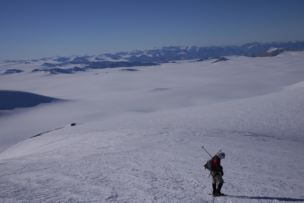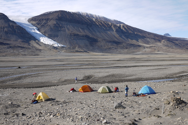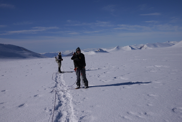 In 2010, we climbed Barbeau Peak, the high point of the Canadian Territory of Nunuvat. From the head of the Tanquery Fjord in Quttinirpaaq National Park, Ellesmere Island, we trekked up the Air Force River valley, across a frozen lake at the toe of the Air Force Glacier, and up onto the glacier itself. From there, we traversed over to Barbeau Peak, and summitted about seven days after our arrival at Tanquery Fjord. We returned to the national park via the McDonald River. Our group was led by Jack Bennett, first person to have climbed all high points in each of the 13 Canadian Provinces. Although Jack had already climbed Barbeau, he lead this trip so that his son, Tom, could finish his list of Canadian high points. Tom made the summit, as did the rest of us. Below are pictures from our adventure.